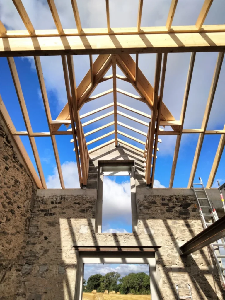 Appréciée pour son authenticité et son esthétique, la charpente traditionnelle offre un cachet unique, mettant en valeur le bois et le savoir-faire des artisans. Elle permet également une grande liberté d’aménagement, notamment pour la création de combles habitables ou d’espaces ouverts.